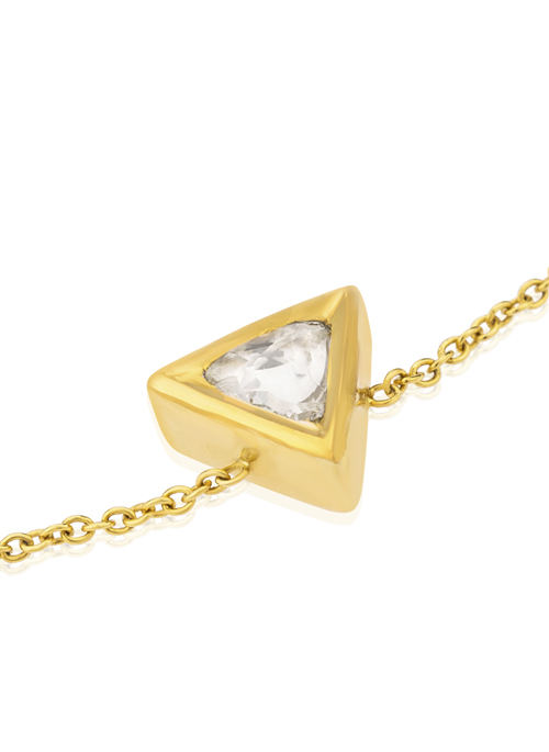 This delicate diamond and 18ct gold triangle bracelet adds understated glamour to any outfit. The Chelsea Gold Collection is a unique assortment of luxury 18ct jewellery in yellow gold, white gold, and rose gold with diamonds, emeralds, sapphires, pearls and precious gemstones. Elegant classics with a twist.