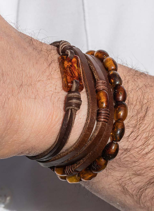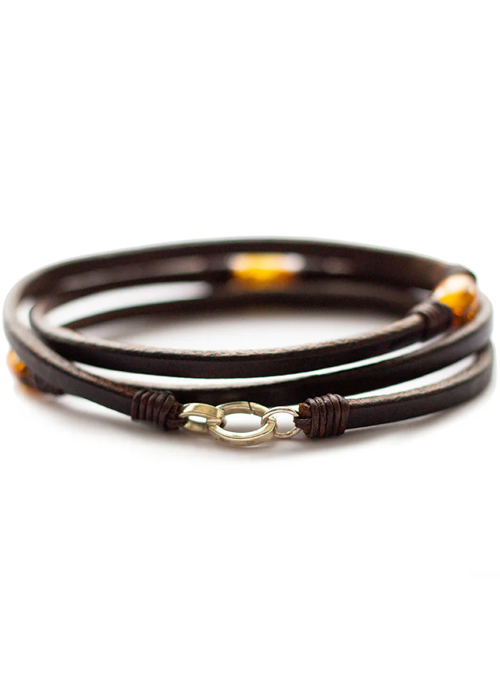 Brown Baltic Amber and American Bison Leather Strap