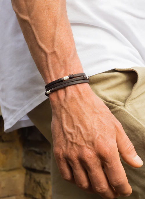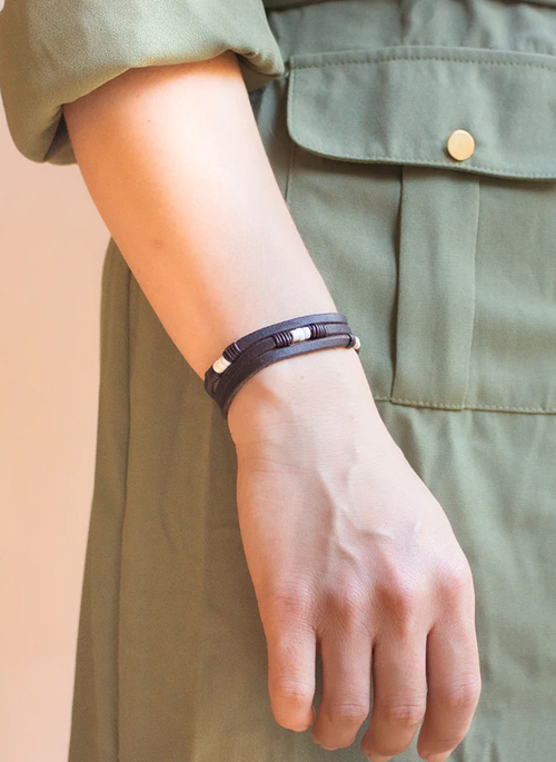 The Atlas ‘Trinity3’ captures the divine power of three and draws inspiration from the Goomba trade beads. The beads have been used for trade, passing from hand-to-hand, since the 1800’s. The porcelain beads are infused with positive energy and resonate with human connection. Worn to create a calming effect on the wearer, they serve as a soft reminder to remain grounded.