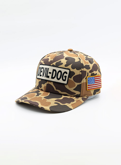 From the woods to the worksite, this duck camo trucker is built to go where you go. Cotton twill keeps it tough, and the snapback adjusts for all-day wear. The American flag patch salutes where it’s from, and that DEVIL-DOG badge up front makes it clear—you’re wearing gear that works as hard as you do.Details: