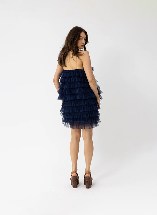 Carrie Bradshaw approved, this fabulous tutu top flutters with you through chaos and calm. Tiered mesh ruffles in a playful halter-esque silhouette is reminiscent of recent styles seen at NY Fashion Week.