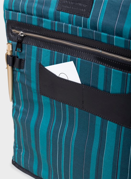 The Veer backpack is ergonomically designed to fit perfectly on the wearer's back, with zippers hidden behind a leather flap to ensure the safety of your belongings.
