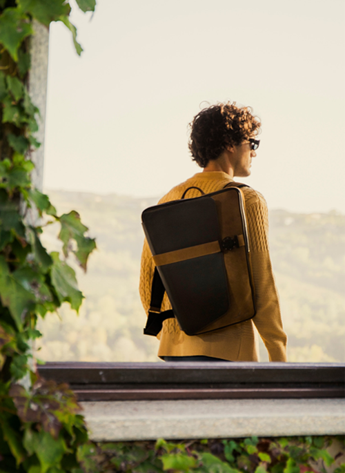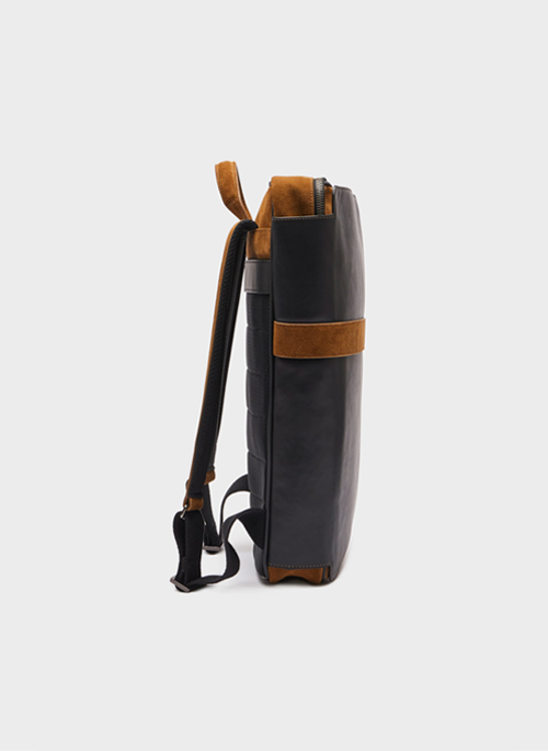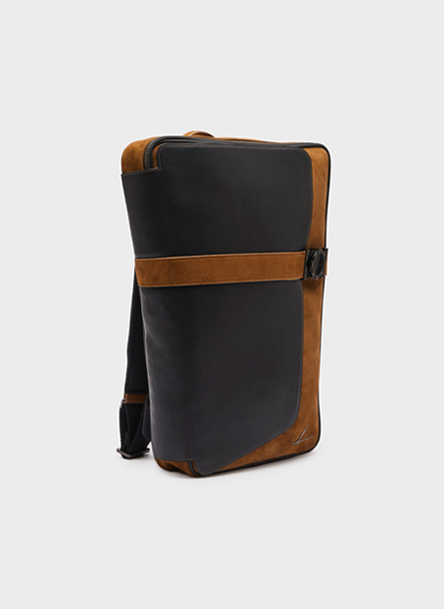The Veer backpack is ergonomically designed to fit perfectly on the wearer's back, with zippers hidden behind a leather flap to ensure the safety of your belongings.