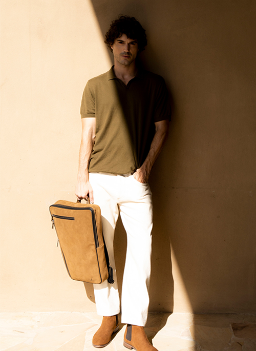The flap-less Veer backpack is crafted from sophisticated Vesuvio leather and captivating ocean leather. It features a minimalist design, perfect for those who love accessories with clean-lines.