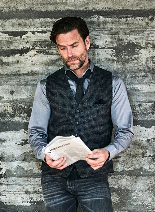 - Color: Fine structured check pattern in dark anthracite and shades of gray – modern, masculine, and timelessly versatile