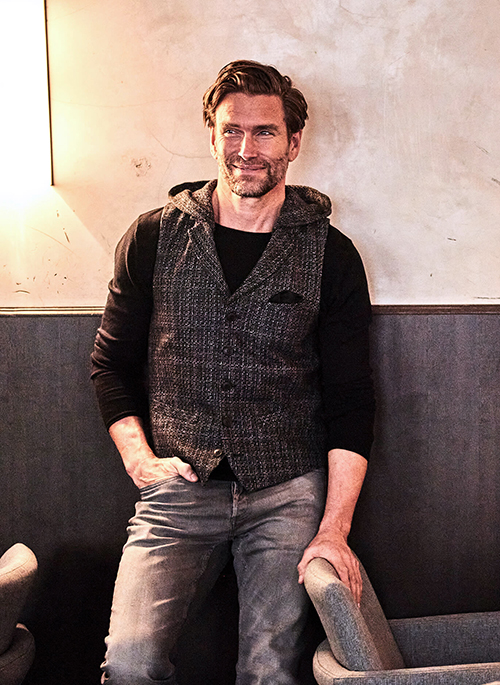 Men’s Vest/Waistcoat with lapels and hood crafted from the finest Italian fabricDetails: