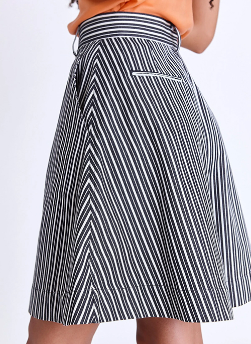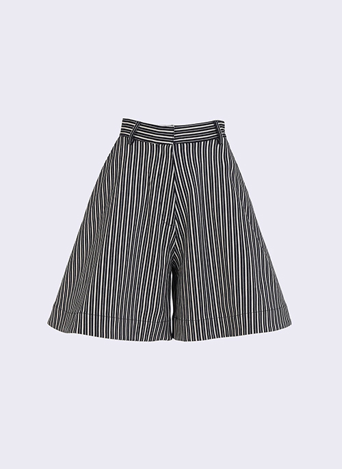 Details: Flared leg shortsHigh waisted A-line volumeTailoring waist with hook and bars and internal button openingFront slanted pockets and back jet pockets