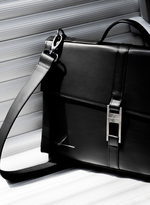 The 12 H bag is designed to combine practicality and sophistication, crafted from captivating ocean leather, and embellished with a central anodized aluminum snap hook and the Alberto Olivero monogram logo in brass.