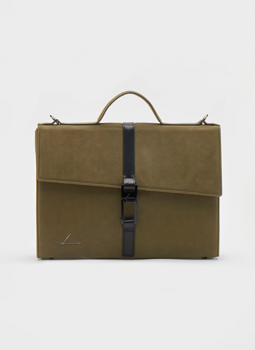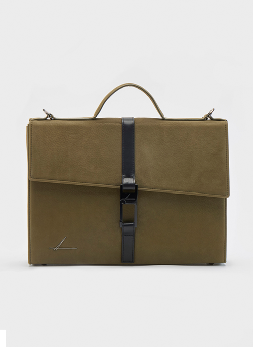 The 12 H bag is designed to combine practicality and sophistication, crafted from captivating ocean leather, and embellished with a central anodized aluminum snap hook and the Alberto Olivero monogram logo in brass.