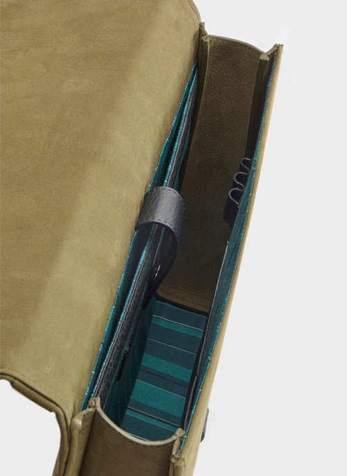The sturdy yet delicate handle is designed for maximum comfort while carrying, while the adjustable leather shoulder strap allows you to carry the bag in style. The interior space is organized to hold a laptop up to 13.5" and to organize everything you need for different moments of the day, from a business meeting to a cocktail hour with friends.