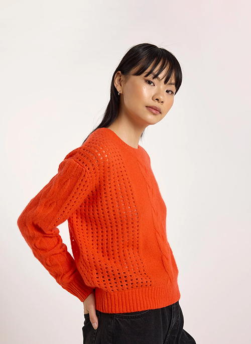 Elevate your everyday knitwear with the Amara Cable Crew Neck Jumper - a beautifully soft cashmere-silk blend crafted for lightweight warmth and refined texture. Featuring an intricate cable-knit design, this crew neck delivers a timeless and feminine silhouette. Designed with a regular fit that sits neatly at the top of the hip, pair it with tailored trousers, denim, or layered with a shirt for a polished, transitional look.Details: