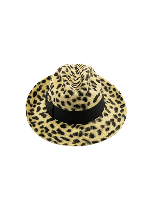 Our Dalida Leo is a women's fedora hat made of fine lapin felt with a melousine finish, combining softness and durability in an elegant design. The animal pattern adds a distinctive and contemporary touch, perfect for those seeking a sophisticated and characterful accessory. Grosgrain strap and Doria bow in black color. Ideal for enhancing any outfit with style and sophistication.Details: