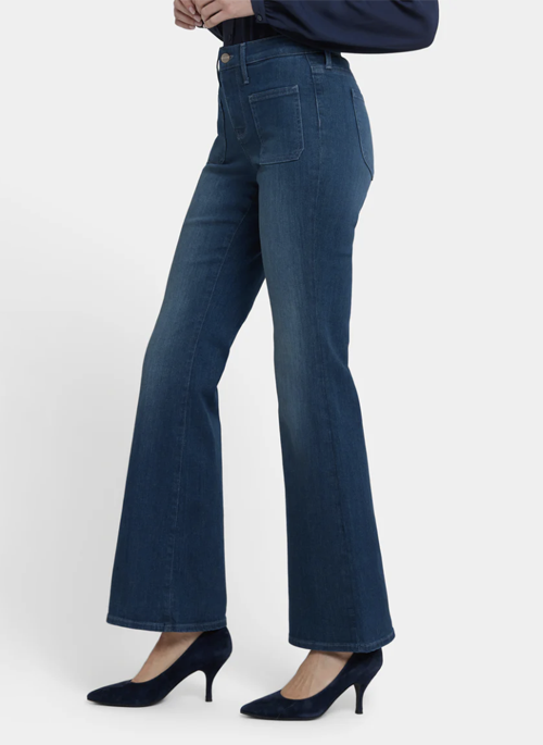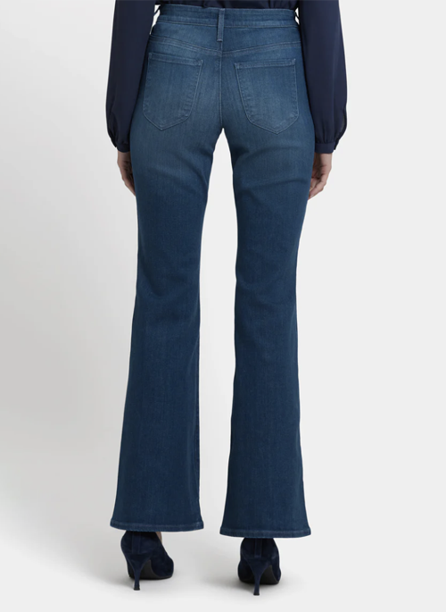 NYDJ's Ava Flared Jeans have your curves covered. They feature an on-trend silhouette that hugs the waist, hips and thighs, then flares out at the hem for a bold statement. They're also highly flattering thanks to our signature Lift Tuck® Technology, which uses a proprietary inner panel with a patented criss-cross design to flatten in front and lift in back. Finished with front and back patch pockets, zip fly and button closure. Hugo Rain is a deep dark indigo wash with a unique tint as well as hand sanding and whiskers. This jean is made with earth-friendly methods that result in reduced consumption of water, chemicals and/or energy.