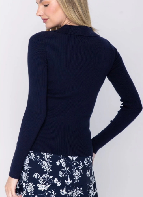 INTRODUCING THE BAILEY, IT IS NOW AVAILABLE IN THIS DEEP NAVY COLOR PERFECT FOR THE SEASON. WE’VE ADDED A BIT OF FLAIR TO YOUR BASIC KNIT AND MADE IT A TASTEFUL FEMININE TOP. PERFECT FOR ANYONE IN THEIR SOFT GIRL ERA. PERSONALIZE YOUR LOOK WITH ACCESSORIES AND YOUR FAVORITE YAKIRA BELLA SKIRT.