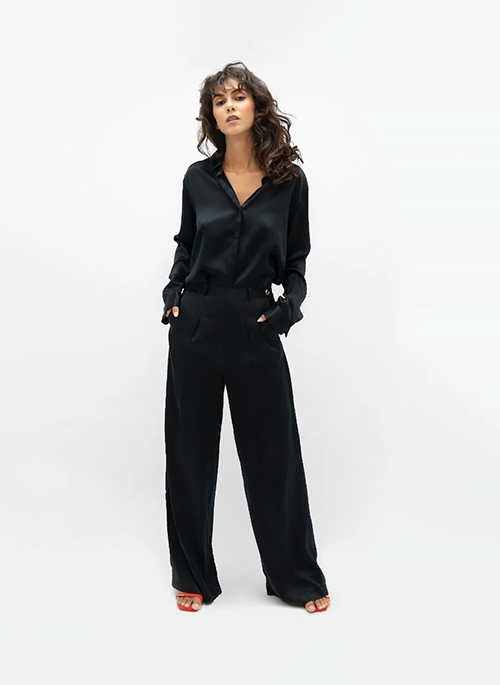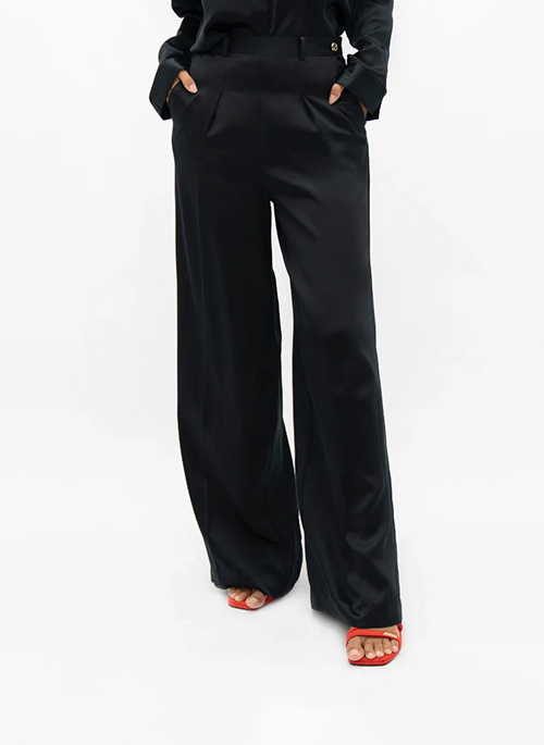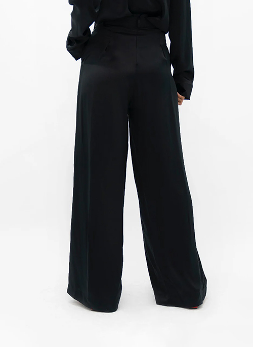 1 People’s Branson high-waist trousers. Wide-leg fit. Pleated details on the front that brings structure both on the front and back of the garment. An invisible side zipper with metal hook fastening, front in hip pockets, false welt back pockets and elegant belt loops.