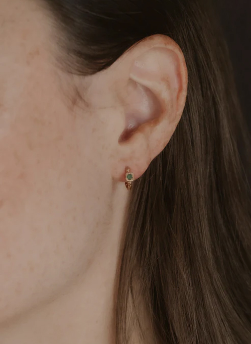 Layer up with these mini huggie hoop earrings. Inspired by the resilience of lichens and finished with a striking green chalcedony gemstone these gold vermeil huggies will never be out of your ears. Effortlessly upgrade your ear stack.