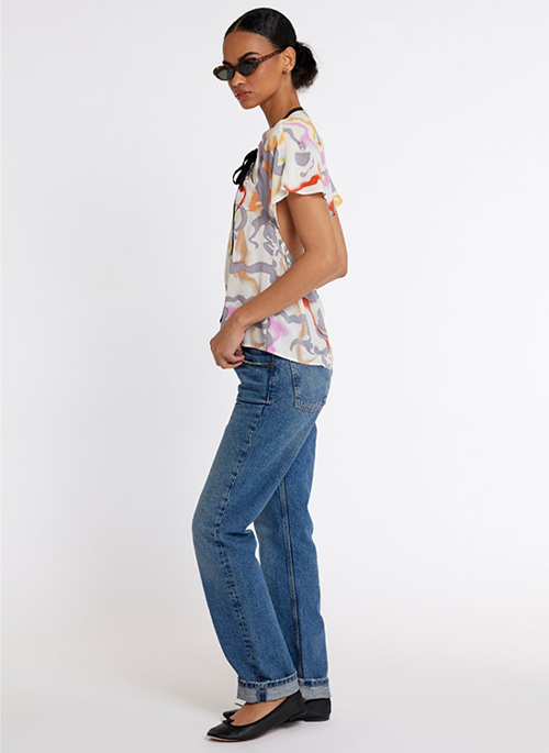 Introducing our silk Brisa Blouse, a refined essential that effortlessly combines comfort and elegance. With a relaxed silhouette and a subtle yet sophisticated bow gracing the neckline, this style redefines casual chic.