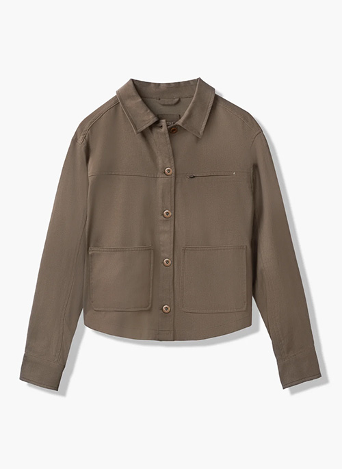 • Soft yet structured, the Cafe Jacket is made of a sustainable blend of 52% Tencel and 48% Cotton, providing the perfect mid-weight layer for crisp mornings, lovely afternoons, and chilly evenings.