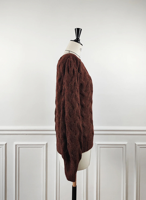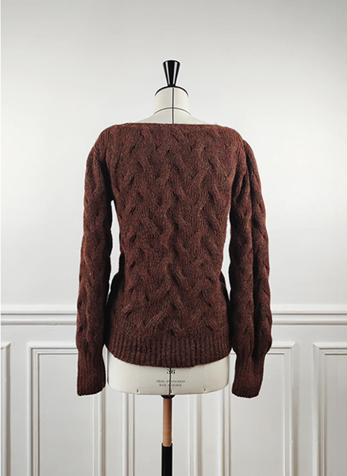 Hand knitted chunky cable sweater with puff 'balloon' sleeves. A rare feminine design.