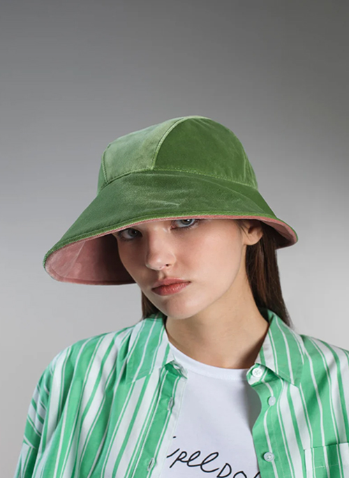 With an eye on sustainability, Cloche embodies effortless elegance and modern versatility. In addition to being made of soft velvet from recycled polyester, this model adapts to different styling solutions thanks to its reversibility.Details: