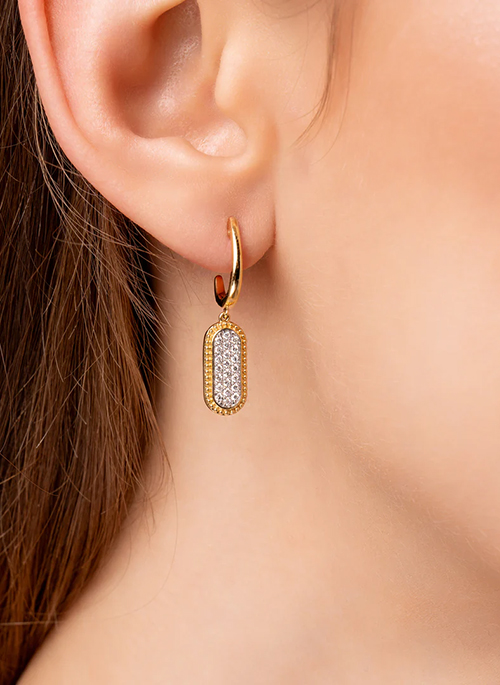 These striking paperclip-style dangling earrings are crafted in 18K yellow gold and feature approximately 0.38ctw of diamonds, graded G in color and SI1 in clarity. This elegant, contemporary design is a versatile piece that adds a touch of luxury to any ensemble.