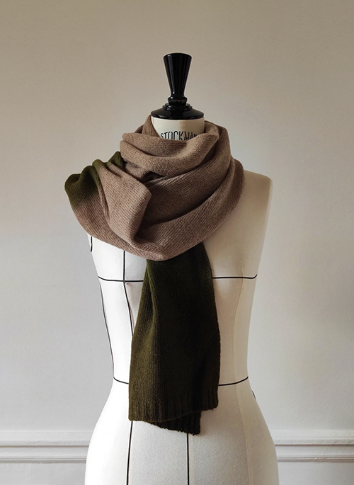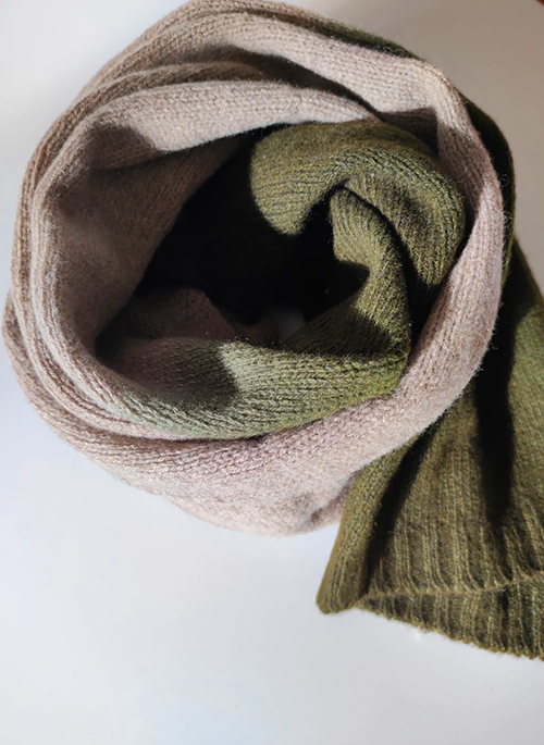 Dip dye scarf in beige/kaki colour. An iconic piece for warmth, style and coziness. This knitted scarf is made in Italy from regenerated cashmere: a circular and sustainable process.Details: