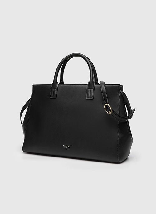 Details:Material: Made in an innovative Vegan Microfiber, exclusive to ALKEME ATELIER. The material is lightweight.Lining: Made from a polyester created out of recycled plastic bottles. Size: 14" base & 16" Wide X 10" H X 6" D approxColor : Black