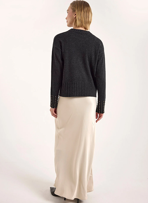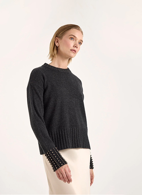 Add a touch of refined elegance to your wardrobe with the Ellie Bead Detail Cashmere Jumper. Crafted from 100% Grade-A Mongolian cashmere, this crew neck sweater is luxuriously soft and warm, featuring delicate beaded embellishments along the sleeves for a subtle, sophisticated finish. Its classic silhouette and regular fit, sitting at the top of the hip, make it easy to style with tailored trousers, skirts, or denim for versatile, polished looks throughout the season.Details: