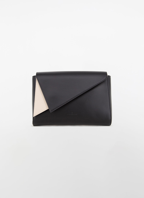 Calfskin leather bag with geometric details reminiscent of the lines of a sailboat. Adjustable and removable cross-body strap, front pocket, and double magnetic closure. Light gold-plated finishes. Handmade in Milan with high-quality materials.