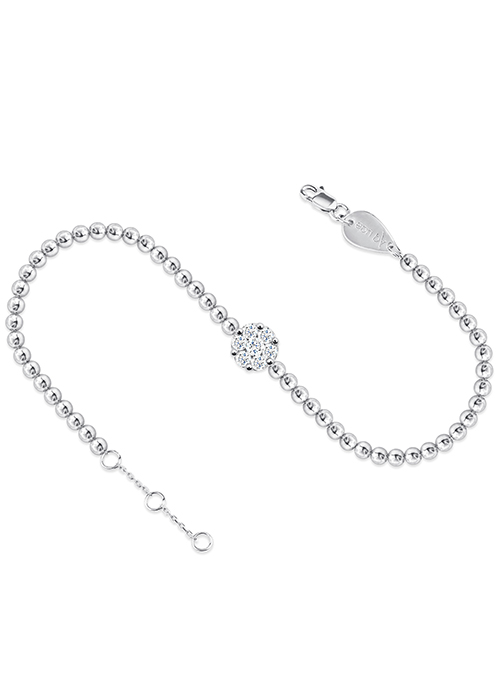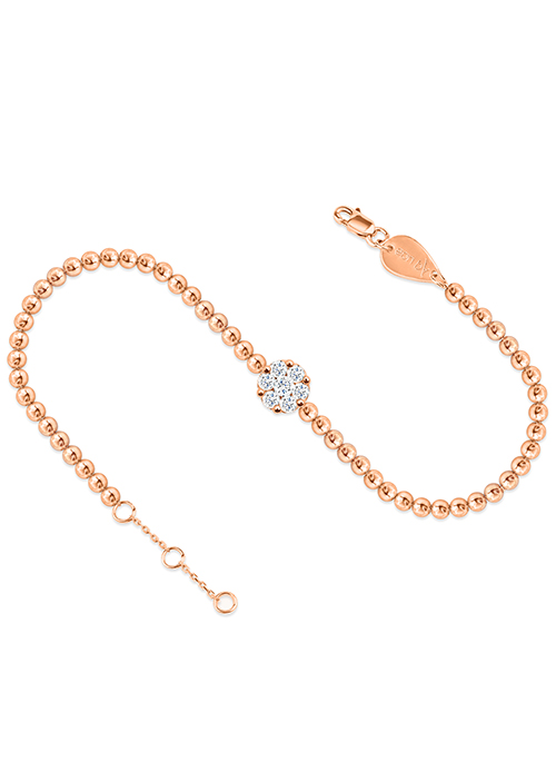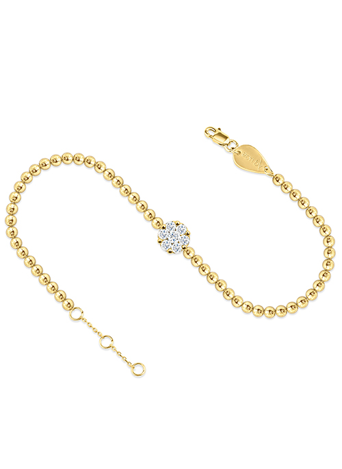 Flower Cluster Beads Anklet features a chain made of small and round golds; it holds a beautiful floral motif made of tiny white diamonds perfect to glamorize your outfit. This gorgeous piece is available in gold colors Yellow, White, and Rose. The piece features a gold clasp with three openings, allowing for easy and precise size adjustment.