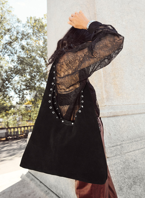 The Industry Slouchy Hobo makes a bold statement with its oversized silhouette and eyelet-trimmed handle. Designed to sit comfortably on your shoulder, it balances edgy detailing with an easy, relaxed shape. Functional inside and out, this hobo includes both an internal slip pocket and an external slip pocket to keep essentials close at hand, while the magnetic snap closure secures the spacious interior.
