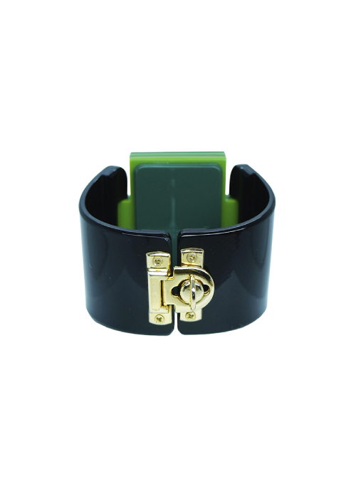 Acrylic bracelet, handmade, articulated, with glass bead, metal clasp, metals with golden finish. Not adjustable model (choose the size). Details: XS = 14 to 16 cm S = 17 to 18 cm M = 19 to 20 cm L = 21 to 24 cm