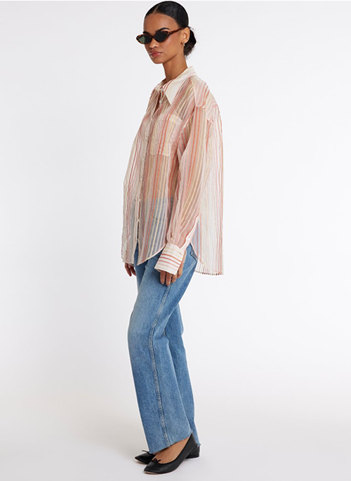 The Keeley is a retro wardrobe staple. The shirt is cut from a breathable sheer cotton and silk blend, the perfect feminine balance to its oversized relaxed fit and pronounced collar. Effortless style meets casual comfort in the Keeley.