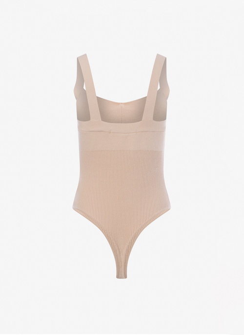 Knitted bodysuit in high-stretch fabric, offering a sleek, sculpted silhouette.