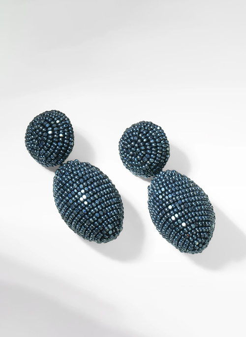Handmade, lightweight luxe crystal post earrings. Details: Cotton Glass Beads Mild Steel Post Brass ComponentsNickel Free Italian Leather backing Size: Length 2.5"| Width 1”