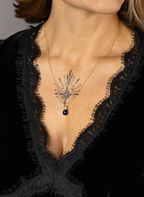 Add the infinite power of the universe to your day with this striking gold Lapis Lazuli disc necklace. The understated beauty of this jewellery is offset with the deep blue gemstone beloved by the Egyptians and seen as a symbol of the night sky with this striking lapis lazuli drop necklace.Details: