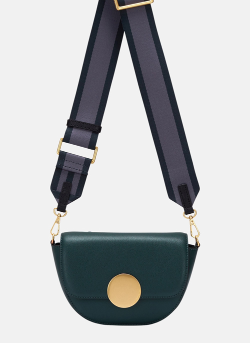 The Oryany Lottie Saddle Crossbody Small Handbags in vibrant green leather redefine sophistication and functionality. This stunning handbag is a part of Oryany's signature style, perfect for the modern woman. Designed with a sleek saddle bag silhouette, it seamlessly blends elegance with everyday practicality.Crafted from high-quality genuine leather, the Lottie Crossbody is not just a bag; it's a fashion statement. Its unique Oryany signature disk closure adds a distinctive flair, making it an eye-catching accessory for any outfit.