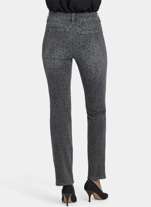 You can't go wrong with our iconic bestselling fit. The curve-sculpting, figure-elongating construction of NYDJ's Marilyn Straight Jeans with High Rise pairs well with everything, in a versatile straight-leg silhouette. This Marilyn Straight style features an even higher rise and a slightly shorter inseam than our typical Marilyn Straight. Plus, our Lift Tuck® Technology uses a proprietary slimming panel with a patented criss-cross design to shape and support your curves. Finished with classic five-pocket styling, zip fly and button closure. Grey Daniela Ditsy is a medium grey wash with allover ditsy floral print. This jean is made with earth-friendly methods that result in reduced consumption of water, chemicals and/or energy.