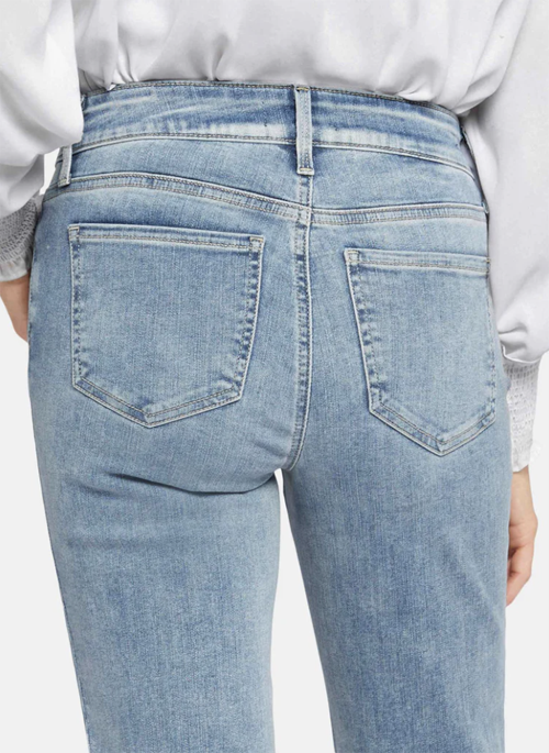The easy, figure-elongating construction of the NYDJ Marilyn Straight Jeans in Haley Blue pairs well with everything, thanks to a flattering waist and a versatile straight-leg fit. Lift Tuck® Technology uses a proprietary slimming panel with a patented criss-cross design to shape and support your curves for an always-sleek silhouette. Finished with classic five-pocket styling, zip fly and button closure.