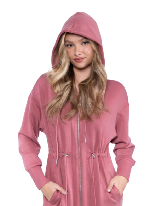 THE MINA IS THE ULTIMATE EVERYDAY ESSENTIAL, SEAMLESSLY BLENDING THE COMFORT OF YOUR FAVORITE SWEATSHIRT WITH A POLISHED, FEMININE SILHOUETTE. DESIGNED FOR LIFE ON THE GO, IT FEATURES A FULL-ZIP FRONT AND A BUILT-IN HOOD THAT PROVIDE A MODERN, ATHLETIC EDGE. THE FUNCTIONAL DRAWSTRING WAIST ALLOWS YOU TO TRANSITION FROM A RELAXED FIT TO A MORE DEFINED SHAPE IN SECONDS, WHILE THE PRACTICAL SIDE POCKETS AND COZY RIBBED CUFFS ENSURE ALL-DAY UTILITY.