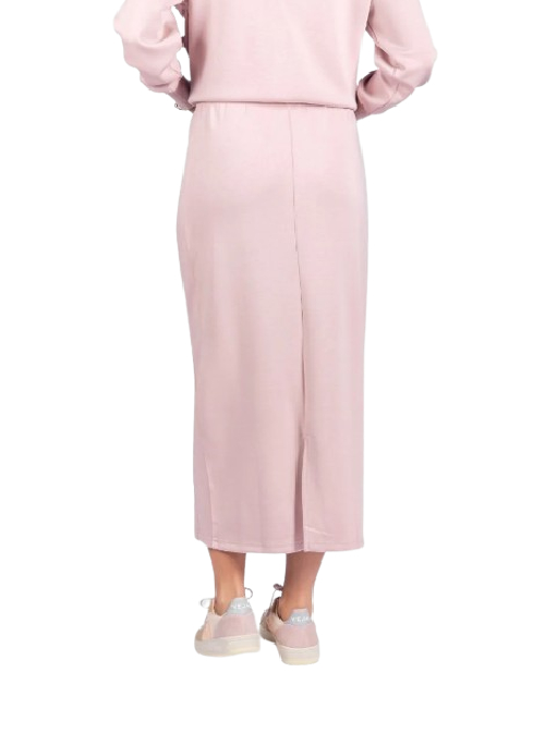 ELEVATE YOUR CASUALWEAR WITH THIS SOFT BLUSH MIDI SKIRT. DESIGNED WITH A RELAXED FIT AND ADJUSTABLE DRAWSTRING WAIST, IT BLENDS EFFORTLESS COMFORT WITH UNDERSTATED STYLE—PERFECT FOR ERRANDS, TRAVEL, OR CHILL DAYS.