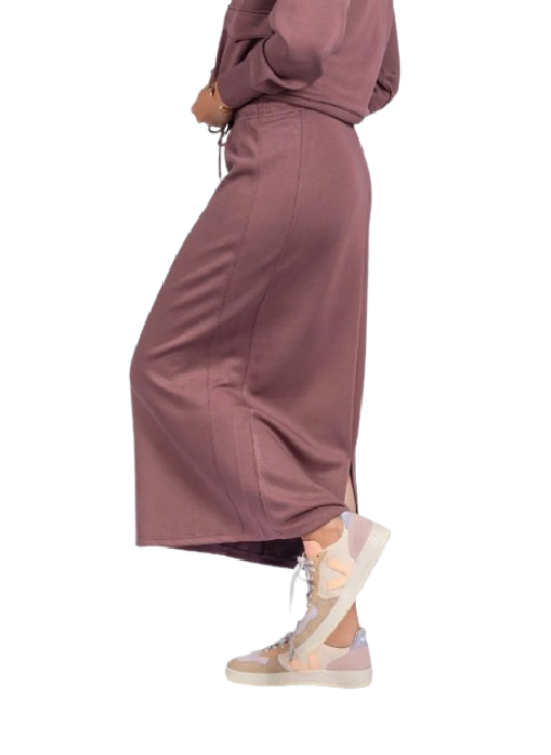 ELEVATE YOUR CASUALWEAR WITH THIS PLUM MIDI SKIRT. DESIGNED WITH A RELAXED FIT AND ADJUSTABLE DRAWSTRING WAIST, IT BLENDS EFFORTLESS COMFORT WITH UNDERSTATED STYLE—PERFECT FOR ERRANDS, TRAVEL, OR CHILL DAYS.