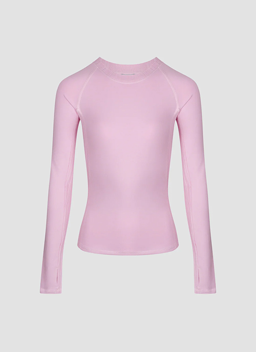 Long sleeve fitted top with ergonomic seams and thumbhole detail.Details: