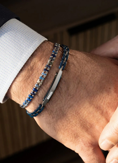 Bracelet NADUR Lapis is a stylish and versatile accessory, featuring eye-catching Lapis Lazuli beads in rich shades of deep blue, soft blue, and grey. With durable stainless steel details adding a dash of sophistication, it’s as tough as it is trendy. The bracelet boasts an adaptable sliding knot, making it the ideal choice for all wrist sizes.Details: