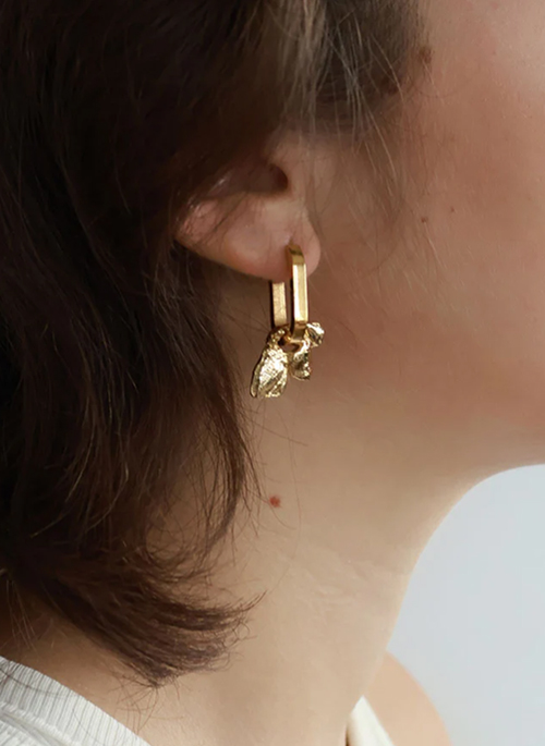 The Nekkar short earrings shine with intensity, radiating far beyond the moment. Their sleek, elongated oval huggie earring in stainless steel gently frames the lobe, creating a refined, contemporary silhouette. Suspended from this minimalist hoop, our signature floral pewter piece, in natural or 22K gold-plated finish, catches and reflects light from every angle, adding a luminous touch to your look. Anne-Marie Chagnon jewelry not only complement your outfits, but also make your uniqueness shine.Details: