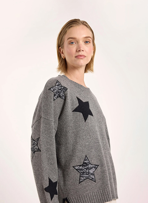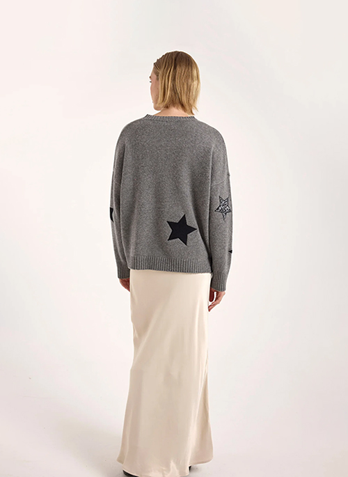The Perrie Patch Star Cashmere Crew Neck Jumper brings playful personality to premium knitwear. Crafted from 100% Grade-A Mongolian cashmere, it features statement star patch detailing that adds a bold, contemporary edge to its luxuriously soft silhouette. Designed with a loose fit that sits at the low hip, pair it with denim, or tailored pieces for an elevated casual look with a touch of star-powered charm.Details: