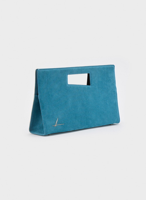 The handle is designed directly onto the rigid body of the bag, through an almost sculptural process of removing material, creating a refined and exclusive detail.