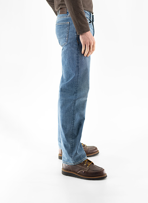 The perfect pair of jeans are the workhorse of any closet. High performance yarns maintain the garment’s shape while offering a soft hand-feel and lasting comfort. In addition, the denim contains sustainable fibers from recycled cotton and plastic waste.Details: