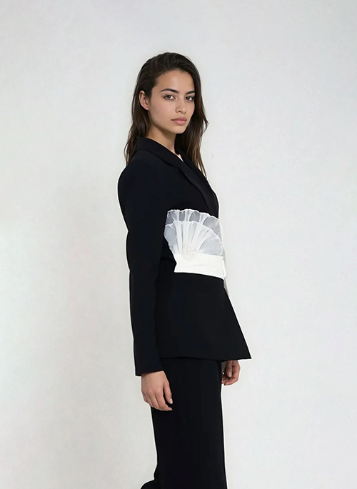 Elevate your wardrobe with the Roset Blazer with Belt, a sophisticated white blazer designed for timeless elegance. Featuring a refined lapel-collar V-neck and classic notch lapel, this blazer exudes polished style. The long sleeves add a graceful touch, while the belt sash with buckle fastening defines the waist for a flattering silhouette. Perfect for both professional and stylish occasion wear, this blazer offers a chic and confident look.Details: