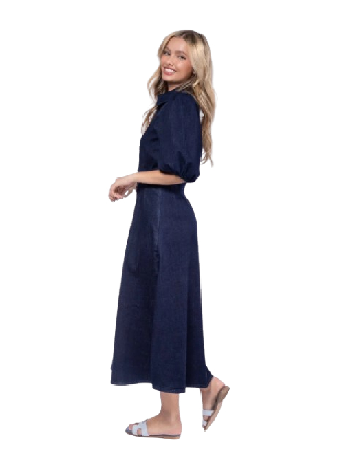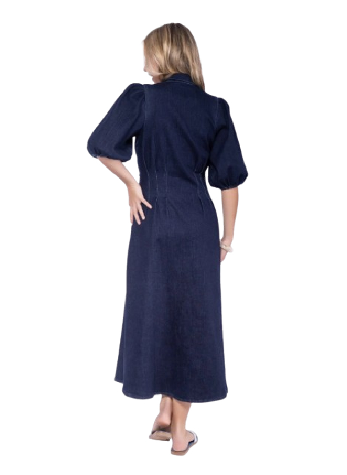 THE RUTH IS THE PERFECT COTTON BLEND OF COMFY DENIM TO HUG YOU IN ALL THE RIGHT PLACES! FEATURES ELBOW LENGTH SLEEVES WITH COMFORTABLE ELASTIC CUFFS AND A COMFORTABLY CINCHED WAIST. BUTTON CLOSURE IS FUNCTIONAL IN THE CHEST AREA AND FEATURES A ZIPPER ON THE SIDE FOR EASY WEAR
